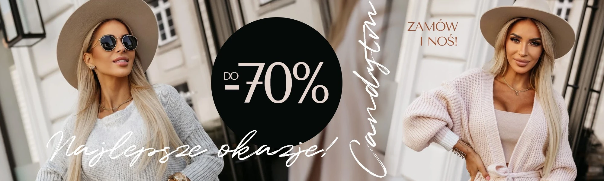 Zapraszamy na zakupy! W butiku internetowym CandyTM znajdziesz tysiące modnych ubrań damskich. Nieustannie obserwujemy trendy i dbamy o to, by w naszych kolekcjach znalazły się najmodniejsze modele, wzory i kolory. Kupisz u nas piękne sukienki na różne okazje, atrakcyjne bluzki, wygodne spodnie oraz ciepłe swetry i kardigany. Naszą ofertę nieustannie uaktualniamy o nowe propozycje, dostosowane do nadchodzącej pory roku. Cyklicznie prowadzimy też wyprzedaże, na których bez trudu upolujesz efektowną odzież w dobrej cenie. Śledź nasze profile w social mediach, a z pewnością nie przegapisz żadnej okazji!