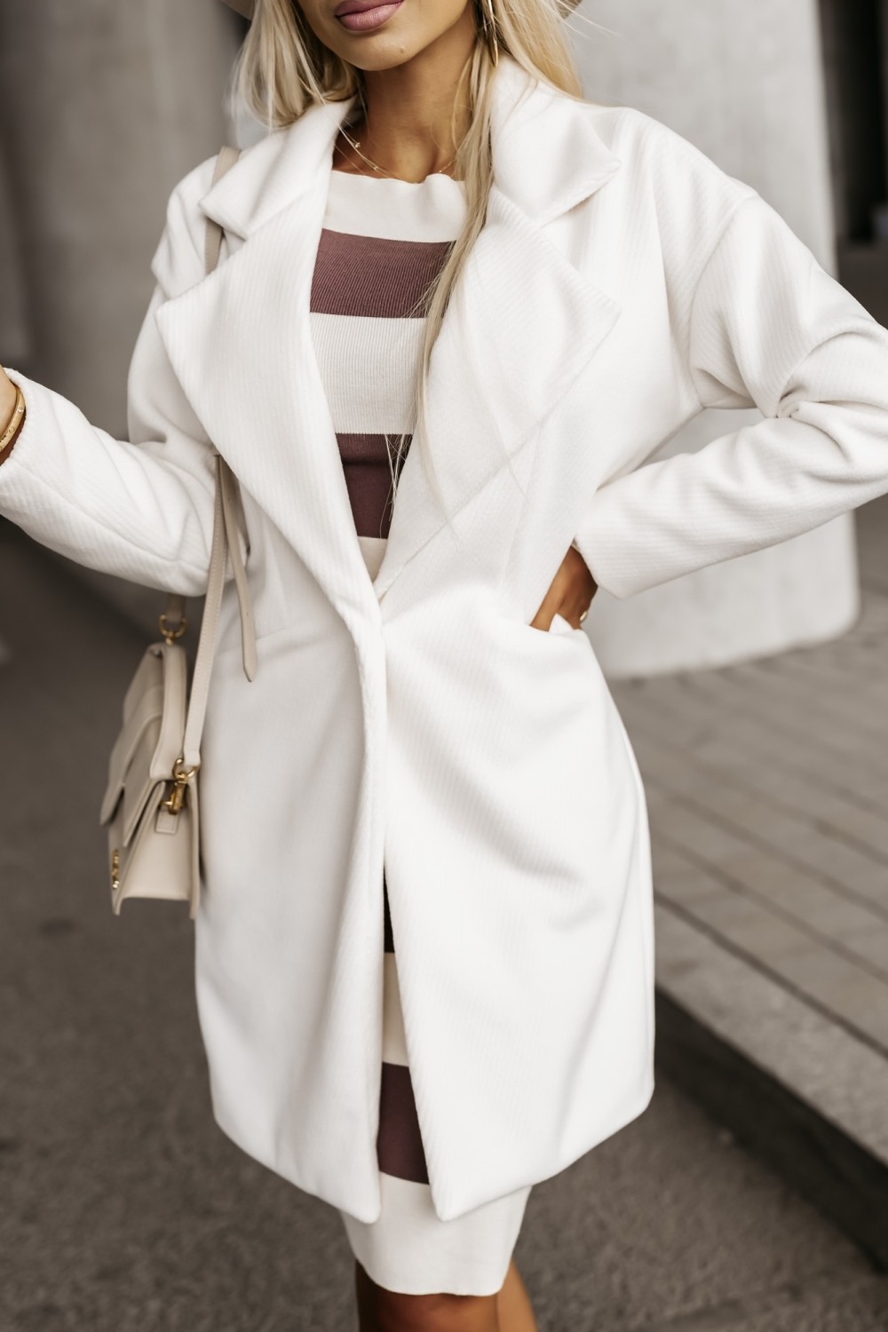 PŁASZCZ Z WEŁNĄ Z KOŁNIERZYKIEM BIAŁY