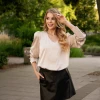 Elegancka, klasyczna koszula z kołnierzykiem. Urozmaicenia dodają jej delikatne złote guziczki oraz kieszeń po lewej stronie. Świetna do bardziej casualowych stylizacji. Jej prosty krój sprawia, że będzie się prezentować idealnie na każdej sylwetce. A więc modnie i wygodnie na każdą chwile.
