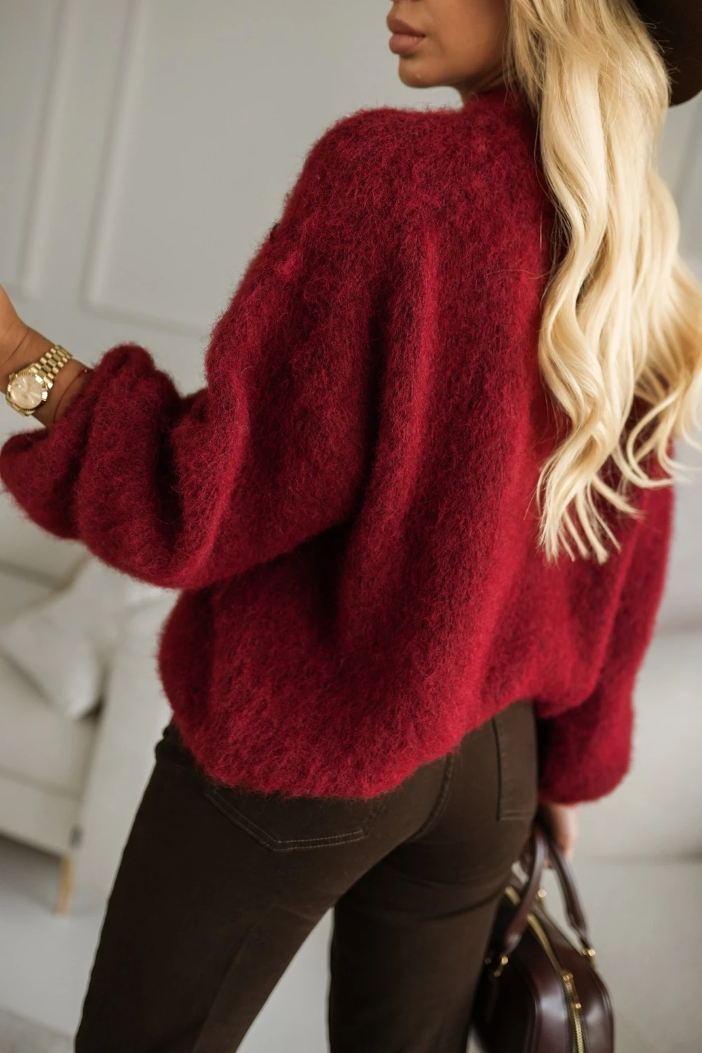 SWETER ROBBIE OVERSIZE Z WEŁNĄ I MOHEREM BURGUNDOWY