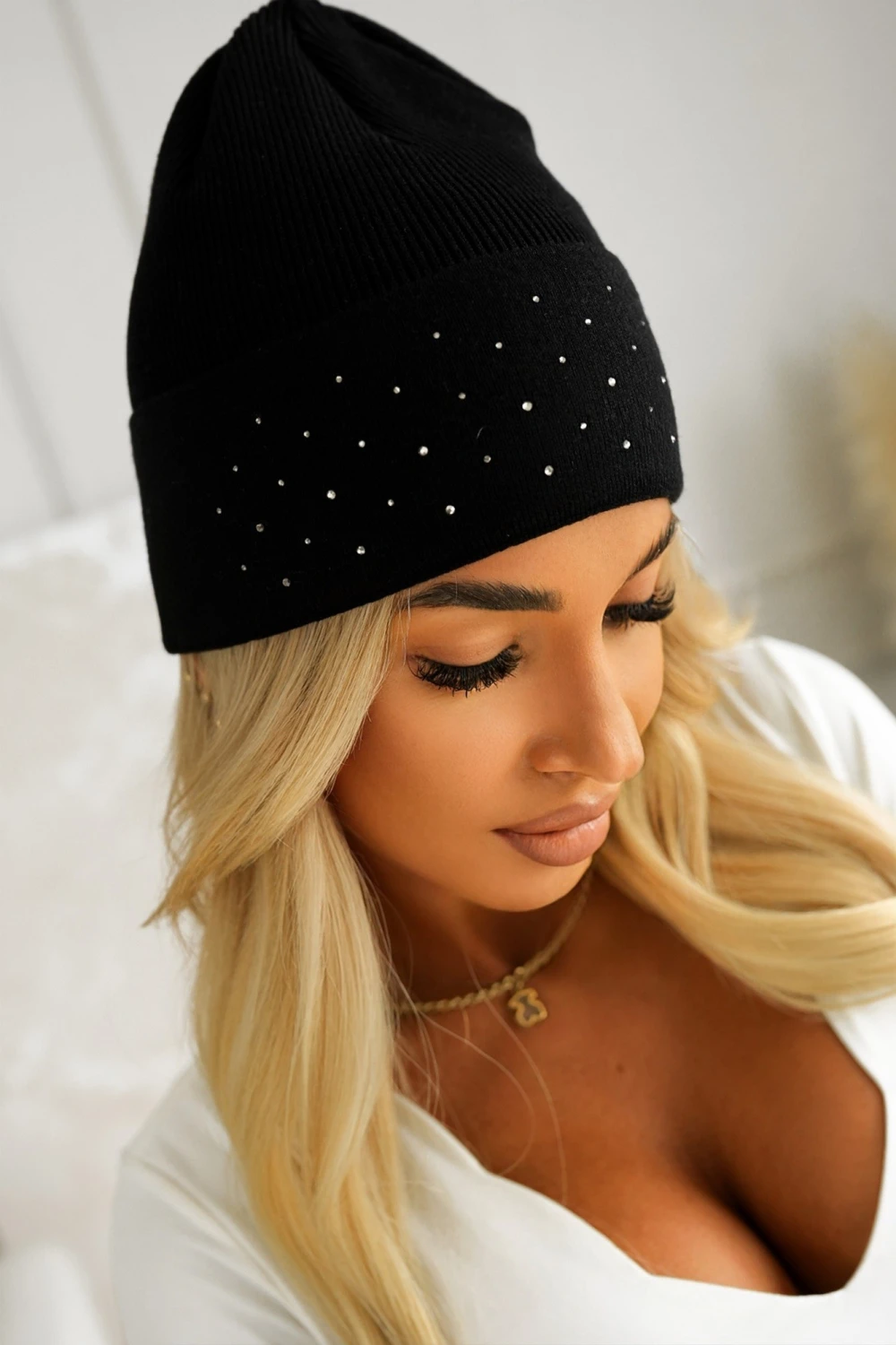 CZAPKA Z WISKOZY ZDOBIONA DELIKATNYMI CYRKONIAMI CZARNA