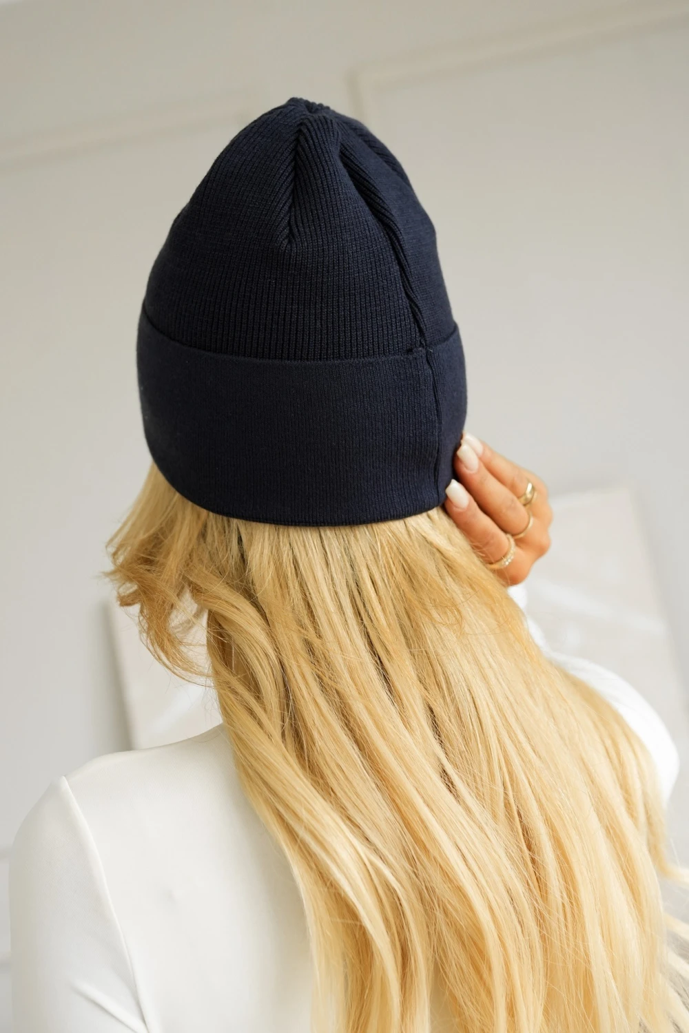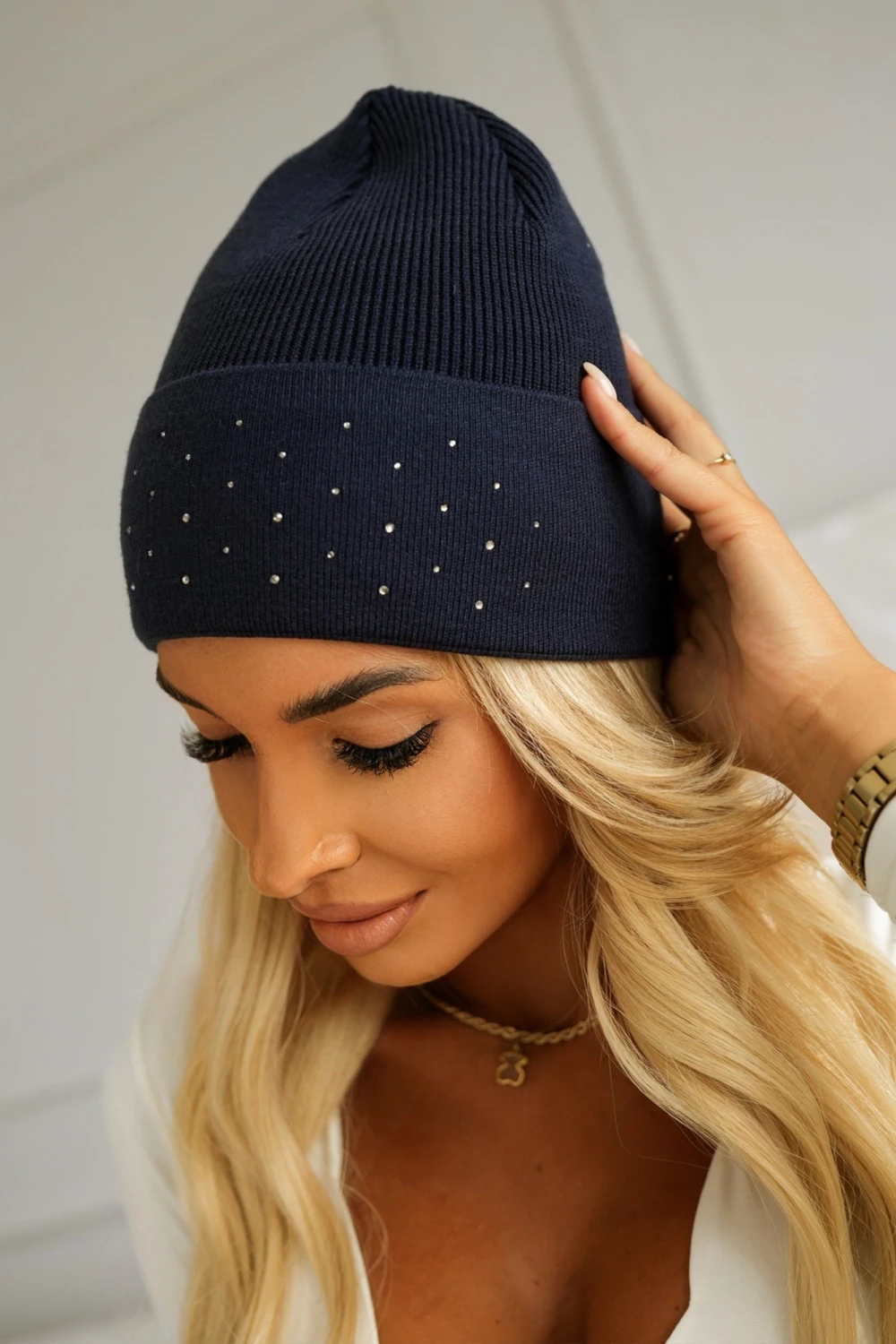 CZAPKA Z WISKOZY ZDOBIONA DELIKATNYMI CYRKONIAMI GRANATOWA