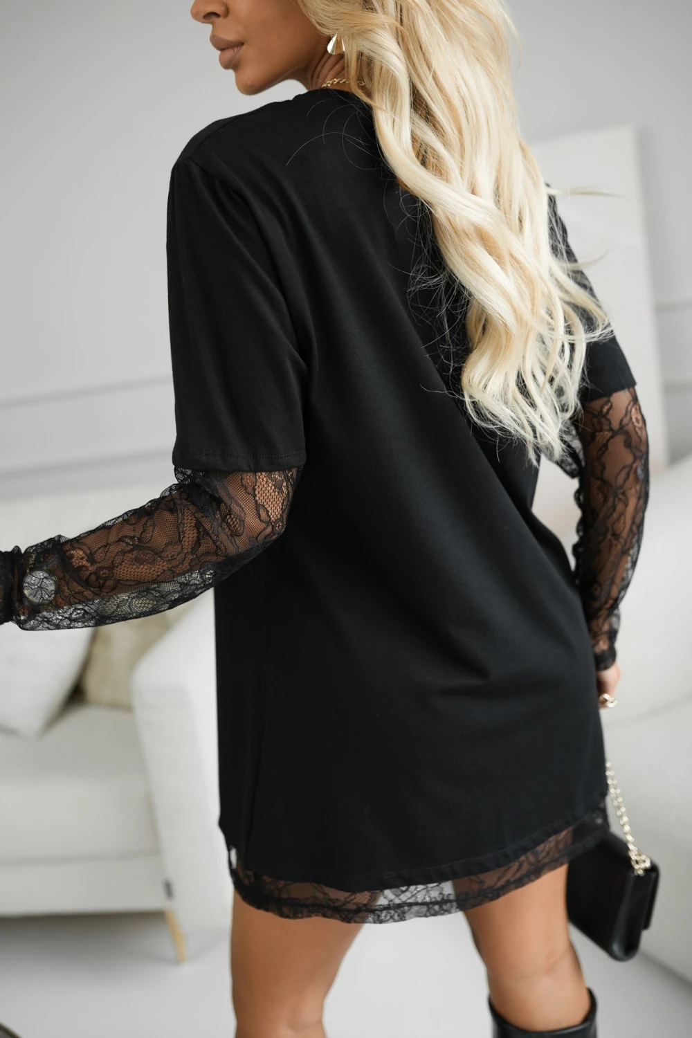 SUKIENKA MINI O KROJU OVERSIZE Z KORONKĄ CZARNA