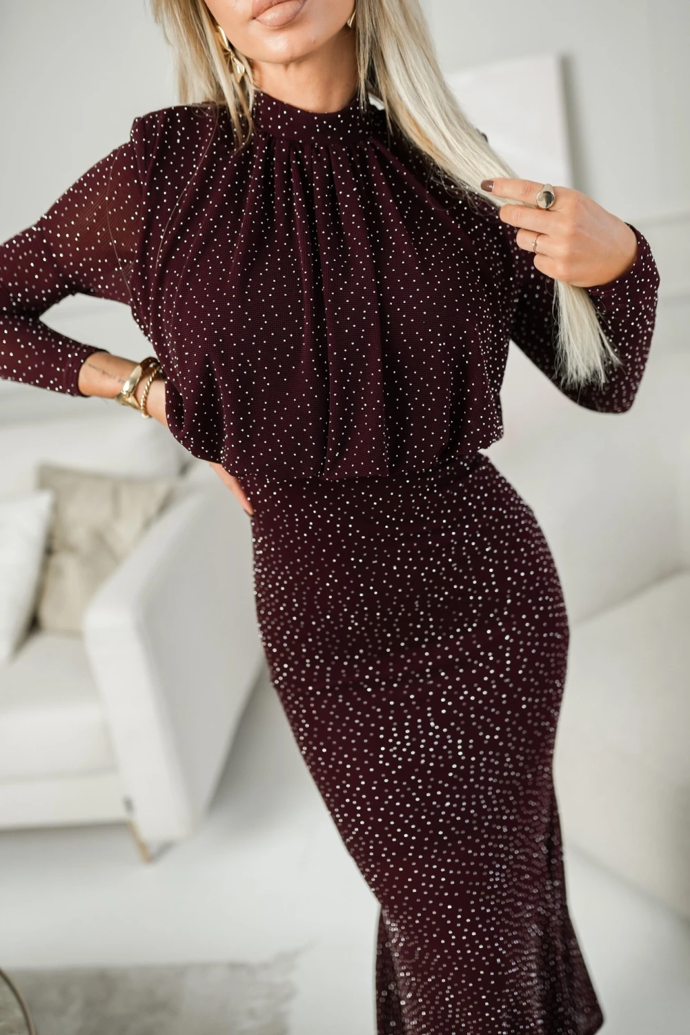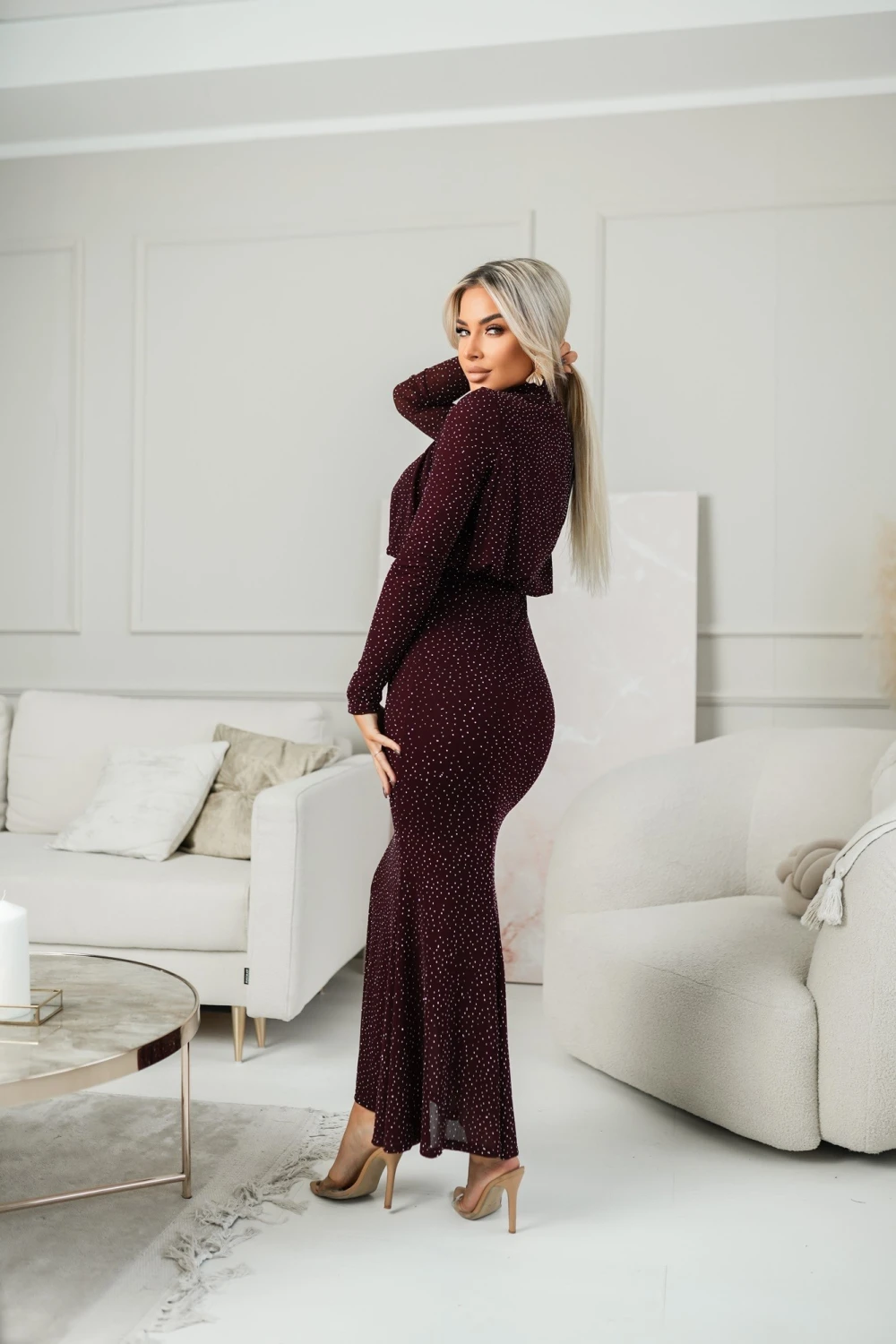 SUKIENKA MAXI BIANCA ZDOBIONA CEKINAMI BURGUNDOWA