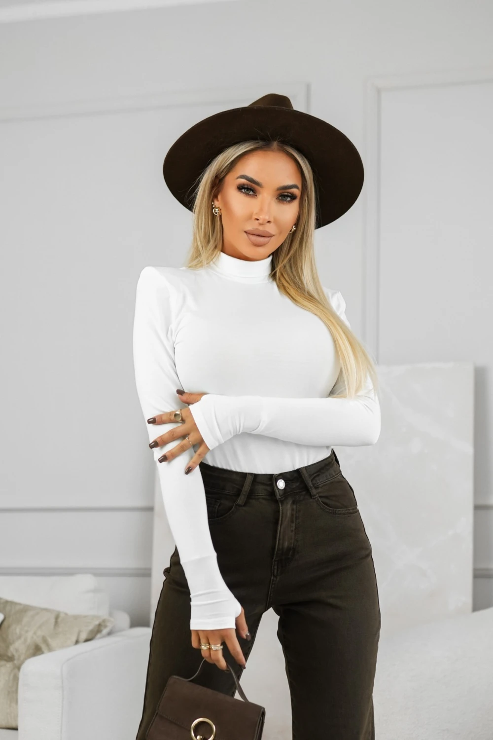 Stylowa i kobieca bluzka z golfem, która podkreśla sylwetkę i dodaje klasy każdej stylizacji. Wykonana z elastycznego, przyjemnego w dotyku materiału, idealnie dopasowuje się do ciała, zapewniając komfort noszenia przez cały dzień. Poduszki na ramionach subtelnie modelują linię barków, nadając nowoczesny, lekko zadziorny charakter. Długi rękaw i klasyczny krój sprawiają, że to doskonała propozycja zarówno do biura, jak i na wieczorne wyjścia.