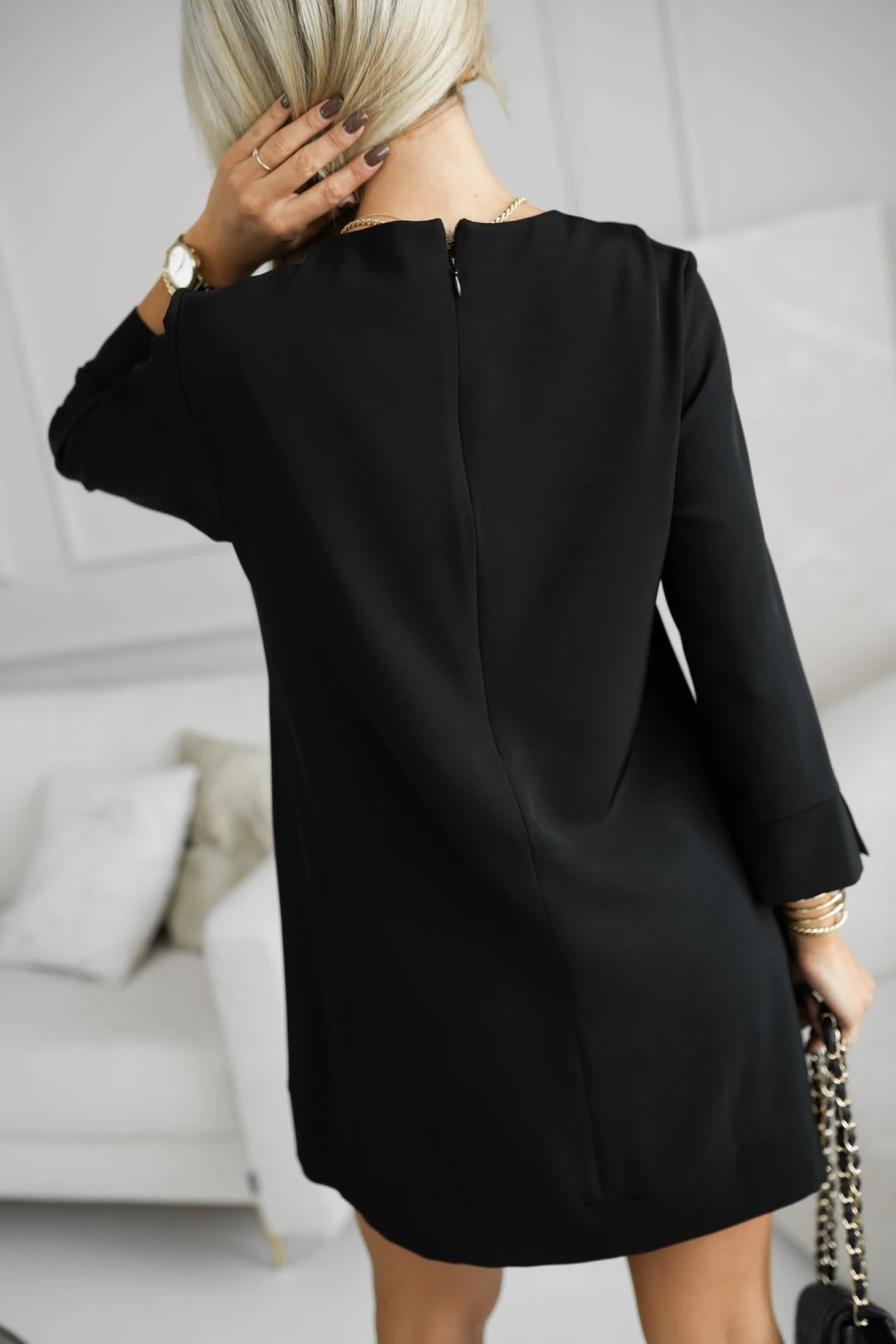 Elegancki i wygodny kombinezon - sukienka z wszytymi spodenkami wewnątrz, który łączy kobiecy styl z pełnym komfortem noszenia. Posiada okrągły dekolt i rękawy 3/4, które subtelnie podkreślają sylwetkę. Zapięcie na suwak z tyłu ułatwia zakładanie i nadaje całości eleganckiego wykończenia. Świetny wybór na co dzień, do pracy czy na spotkanie ze znajomymi — wygląda stylowo, a jednocześnie pozwala czuć się swobodnie w każdej sytuacji.