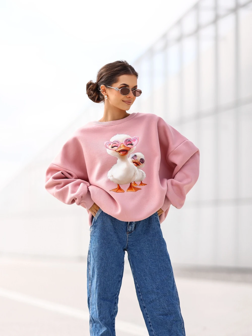BLUZA BAWEŁNIANA OCIEPLANA O KROJU OVERSIZE KACZUSZKI BRUDNY RÓŻ
